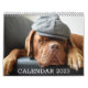 Calendário do amante de cães que pode ser personalizado com a inclusão de 14 fotos para a frente e para trás e os 12 meses. O calendário também pode ser personalizado com a inclusão do ano.