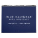 São 12 meses (janeiro - dezembro) vazio calendário azul com feriados (eventos e feriados nos Estados Unidos), arame azul e texto personalizável na primeira página.