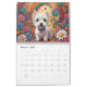 Calendário oeste mostrando 6 x 2 belas imagens de Westies em formações de arte folclórica. (Cada imagem é repetida uma vez no calendário).