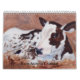 Um calendário que caracteriza pinturas de animais de fazenda, tais como vacas, galinhas, asno, cavalos, e mais pelo artista Brenda Thour.