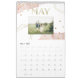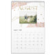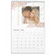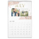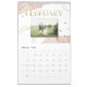 Esta tendência, na moda de 2024, apresenta designs geométricos dourados falsos e sotaques pontilhados, com salpicos cor-de-água rosa-pincelada e fotos pessoais diferentes para cada mês.