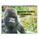 Calendário mensal que caracteriza fotos de gorila de montanha selvagens pstos em perigo de dentro da floresta da montanha de Virunga na beira de Rwanda/Congo.