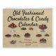 Este calendário apresenta ilustrações coloridas de vintage de chocolates e doces antiquados de 1909.