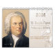 Entre os muitos compositores calendários, esta obra de arte é um calendário de Johann Sebastian Bach. Doze pintores diferentes criaram doze obras de arte sobre o tema do músico da Turíngia, Johann Sebastian Bach. Um décimo terceiro pintor sentiu os doze retratos e os pintou todos em um estilo, na mesma nitidez, e um estilo verdadeiramente admirável. Os doze retratos em doze páginas mensais compartilham seu espaço com doze citações que celebridades no passado disseram para homenagear Johann Sebastian Bach. As citações no calendário Bach são em alemão e inglês. É um calendário bilíngue do Bach.