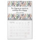 Traga o ano novo em estilo com este calendário chique e bonito. O calendário apresenta provérbios inspiradores de todo o mundo, e a cada mês é decorado com um padrão floral impressionante que consiste em ilustrações botânicas gráficas pintadas à mão. Você também poderia editar as citações inspiradoras e adicionar suas próprias citações motivacionais, afirmações ou afirmações. Que este ano seja melhor que o último. 2025 aqui vamos nós!