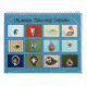 Este calendário apresenta doze diferentes animais bonitos e em forma de paisana para oferecer uma cena divertida e colorida para cada mês do ano. Janeiro apresenta uma cena fria com Davin e Annie, os pinguins imperadores. Yin e Yang o koi formam um dentro Taijitu, um quadro inspirado para fevereiro. Marcha traz diversão com Chaucer, o pato de borracha flutuando em um banho de bolha. Sadie o caramujo traz um toque de primavera com uma margarida rosa para dar as boas vindas às flores de abril. Chrissy, o ouriço, oferece uma cena bonita para maio, e Scales, o peixe-dourado, traz alguma serenidade nadando em seu lago para junho. Julho e agosto oferecem um salto com Tanga, o Cavalo do Mar, em seu recife de coral, e Callie, a tartaruga marinha nadando sob a superfície. Selene os poleiros de sua árvore ocos para setembro, enquanto Ooh o fantasma traz um pouco de diversão assustadora para outubro. Novembro vê Basil, o porco com barriga-pote cheirando ao redor do pátio por pipoca. Por fim Alexandre, o cardeal encerra o ano sentado em neve tocado de verde para dezembro. O cobrir da frente apresenta Fuku e Heiwa, os koi nadando entre algumas almofadas de lírio para oferecer uma agradável introdução à série, e o cobrir de trás apresenta versões menores das imagens internas para que você possa ter uma visão do ano que vem.