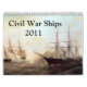 Calendário de 2011 com imagens de navios da Guerra Civil, aviões, monitores e navios-tanque das frotas de água azul e marrom.