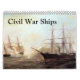 calendário com imagens de navios da Guerra Civil, aviões, monitores e navios-tanque das frotas de água azul e marrom.