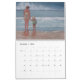 Este calendário de praia é sobre brincar na areia e nas ondas. As imagens são sobre crianças brincando na costa, com castelos de areia arenosos, conchas e sol. As crianças na costa estão pulando nas ondas, caminhando pela costa arenosa, e gostando de assar no sol.