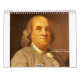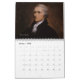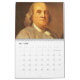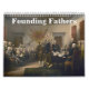 calendário com os principais pais fundadores americanos, incluindo Thomas Jefferson, George Washington, Benjamin Franklin, e muitos outros.