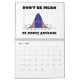 Façam outros fazerem uma dupla tomada com uma dose de humor estatístico com este calendário com uma variedade de afirmações estatísticas humorísticas e animadas. 14 imagens diferentes no total - uma por mês (12), mais uma no cobrir frontal e outra no cobrir traseiro. Você vai gostar deste calendário com uma dose de atitude estatística ao longo do ano! Não precisa ser um mestre em estatísticas, professor de estatística, ou estatístico para desfrutar!