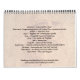 Janeiro - Leda e fevereiro Swan - Esboço de engenharia de uma roda para um veículo movidoMarço - Homem VitruvianoAbril - Batismo de Cristo (detalhe de anjo) maio - Esteira moída em junho - A Batalha de Anghiari julho - Mona Lisa August - Virgem das Rochas setembro - Esboço de anatomia humana, braços e ombros outubro - Leonardo da Vinci Autorretrato - Um anjo em verde com uma Vielle de dezembro - a última ceia