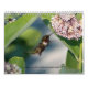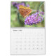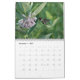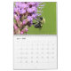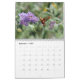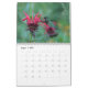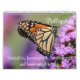 Calendário da natureza com imagens das borboletas, de colibris rubi-throated, de zangões, e de traças clearwing do colibri. As borboletas incluem monarca, o swallowtail preto, e o swallowtail oriental do tigre. Os polinizadores são tudo alimentação mostrada em flores quais incluem o liatris roxo, o milkweed cor-de-rosa, o arbusto de borboleta roxo, e o bálsamo de abelha vermelho escuro.