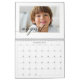 Mande um belo presente personalizado para sua mãe que ela vai gostar. Calendário especial personalizado de colagem de fotos da família para mostrar suas próprias fotos e memórias da família especial. O design frontal do cobrir apresenta um simples design de grade de colagem de 8 fotos com "Mãe" projetado em um belo estilo de script preto escrito à mão. Cada foto é emoldurada por um simples quadro dourado. Personalizar com os nomes dos membros da família. Todo mês apresenta uma imagem do tamanho do cheio do solteiro com o mês escrito em uma elegante caligrafia preta, mostrada levemente sobre cada foto.