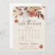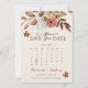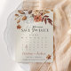 Este elegante cartão Save the Date apresenta um design de calendário rústico com florais de cor de laranja queimados e terracotta, rosas de jardim botânico e dahlias burgundy. Perfeito para um casamento outono com estilo boêmico moderno e sotaques caligráficos manuscritos.