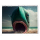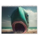 Shark sculpture on the beach, in the style of rendered in cinema4d, surrealistic grotesque, dreamlike illustration, dark cyan and green, concept art, gigantic scale, fish-eye lens
