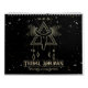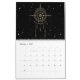 Símbolos de ouro em fundo preto com padrões estelares coloridos. Símbolos que libertam energia positiva e são construtivos são hoje familiares a muitas pessoas da geometria sagrada. Aqui foram combinados com o simbolismo shamanic, que não só tem um efeito visual, como também energeticamente positivo em todas as salas em que o calendário pendura.