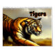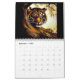 Calendário com doze imagens de tigres em toda a sua feroz glória.