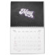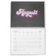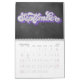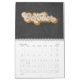 Tipografia do quadro com letra de escrita de bolhas de 70s com sombras coloridas com padrão. Cada mês tem uma cor e um padrão diferentes. Apenas texto. Personalize-o escolhendo as férias e os anos.