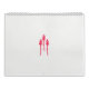 O design mostra três objetos que se assemelham a ornamentos vermelhos e cor-de-rosa de gramados flamingos contra fundo preto. Cada objeto tem uma perna rosa longa e fina que leva a um corpo vermelho e rosa maior com uma ponta pontiaguda, dando a aparência de uma cabeça e pescoço flamingos. A textura dos corpos sugere um material reflexivo ou brilhante.