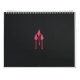 O design mostra três objetos que se assemelham a ornamentos vermelhos e cor-de-rosa de gramados flamingos contra fundo preto. Cada objeto tem uma perna rosa longa e fina que leva a um corpo vermelho e rosa maior com uma ponta pontiaguda, dando a aparência de uma cabeça e pescoço flamingos. A textura dos corpos sugere um material reflexivo ou brilhante.