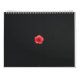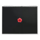 Calendário uma flor vermelha com um centro preto num fundo pr
