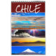 Calendário fotográfico, a qualquer ano, que inclui os incríveis parques nacionais do Chile que apresentam desertos, planícies salgadas, geisers, vulcões, lagos, montanhas, cachoeiras, icebergues, bem como as cidades de Valparaíso e Santiago. Disponível para qualquer ano e em vários idiomas e configurações de feriados. O Chile é um país longo e estreito que se estende ao longo da borda ocidental da América do Sul, com 4.300 km de costa do Oceano Pacífico. Santiago, sua capital, fica em um vale cercado pelos Andes e montanhas da Costa Chilena.