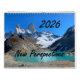 2026 12 months Wall Calendar in English with beautiful Nature Landscape Photos and Bible verses will encourage you every month. The bible verses are fitting into the theme of the year 2026: "New Perspectives". Each month invites to the reflection of a different New Perspective and a fitting bible verse for it. The photos are from the beautiful nature found in Patagonia, Argentina with its amazing mountains and nature landscapes.