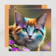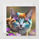 Calico, flores, gata e flores azuis e ferrugem