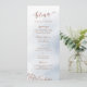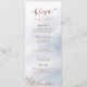 Menu elegante de caligrafia moderna com design floral rústico em cor castanho de cobre em fundo de cor azul-d-água poeirento, excelente para casamento rústico moderno, casamento ou casamento no inverno da primavera. Veja todas as peças correspondentes na coleção abaixo.