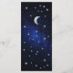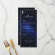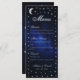 Este elegante cardápio celeste tem uma falso prata-estrela e lua num fundo azul escuro representando o céu noturno. Os nomes, o título "Menu" e as legendas são escritos em um roteiro caligráfico elegante. Todo texto pode ser personalizado e tem uma cinza de prata semelhante às estrelas. Nas costas, há apenas a lua e as estrelas no mesmo fundo do céu noturno. A foto noturna estrelada ao fundo é de Felix Mittermeier, de Pixabay, e é grátis para uso comercial.