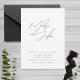 Estes convites de casamento contemporâneos oferecem uma abordagem moderna a um convite preto e branco. A fonte é uma caligrafia em estilo manuscrito em negrito.
