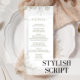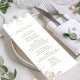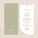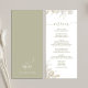 Este design apresenta um casamento, cardápio, elegante, caligrafia, roteiro, verde-sábio, verde-verde, clássico, simples prato, com um design floral.