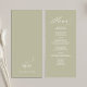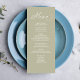Este design apresenta um casamento, cardápio, elegante, caligrafia, roteiro, verde-sábio, verde-verde, clássico, simples prato, com um monograma e design de ampersand no verso