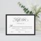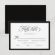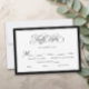 Convide seus hóspedes para responder no estilo do eterno com esta placa RSVP moderna, em preto e branco. O elegante script de "Resposta Rápida" com o fluxo floresce os pares lindamente com as fontes serif clássicas, todas emolduradas por uma sofisticada borda negra que adiciona contraste e definição ousada. Projetado como uma placa horizontal x 5" de 3,5", complementa nossa coleção formal de preto e branco para um conjunto de papelaria coeso e sofisticado. Este design apresenta uma frente branca limpa com caligrafia e tipo pretos, campos personalizáveis para seleções de refeições e data de retorno, e um layout totalmente editável — incluindo fontes, cores e espaçamento. Perfeito para casamentos monocromáticos, minimalistas e formais.