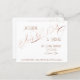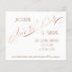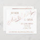 Estilo de orçamento Salve a Data. Este design apresenta uma elegante fonte de caligrafia manual com espiral floresce e suas informações em um modelo de fonte estilo Art Deco. A aparência de folha de rosa Gold é usada no texto da caligrafia com fundo branco (a cor pode ser alterada). Concebido por artista e designer com licença internacional, Audrey Jeanne Roberts, copyright.