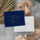 Este delicado cartões de agradecimentos de marinho de caligrafia em ouro é perfeito para um casamento moderno. A design romântica minimalista apresenta uma magnífica e elegante tipografia amarela ouro champanhe num fundo azul marinho com um aspecto simples e limpo. Personalize a parte traseira do cartão com seus nomes e uma mensagem de obrigado. Como alternativa, deixe o vazio da seção modelo da mensagem do obrigado para escrever uma nota personalizada em cada cartão após a sua chegada. Essas cartas podem ser usadas para um casamento, chá de panela ou qualquer evento especial.