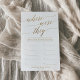 Este elegante jogo de caligrafia dourada "onde eles estavam" é perfeito para um simples chá de panela. A design neutra apresenta um cartão de jogo minimalista decorado com tipografia de folha de ouro romântica e caprichosa. Nota: Este design não apresenta folha de ouro real. É um gráfico de alta qualidade feito para se parecer com folhas de ouro.