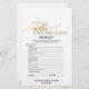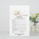 Este simples jogo de caligrafia dourada "o que está na sua bolsa" é perfeito para um chá de panela chic. A frente do cartão de jogo apresenta "como você conhece bem a noiva", e a parte de trás do cartão contém "o que há na bolsa". O clássico design romântico apresenta uma falsa tipografia de folha de ouro e um adorável coração ouro. Personalize a parte frontal da placa com o nome da noiva e a data do chá de panela. Nota: Este design não apresenta folha de ouro real. É um gráfico de alta qualidade feito para se parecer com folhas de ouro.