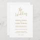 Elegante e caprichoso, este convite de casamento moderno apresenta um design minimalista com uma caligrafia de ouro personalizável num fundo branco nítido. A combinação do elegante pano de fundo branco com a tipografia personalizada de guiões de ouro cria um aspecto eterno e sofisticado, perfeito para qualquer celebração de casamento.
