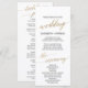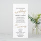 Este elegante programa de casamento de ouro em caligrafia é perfeito para um casamento simples. A design de folha de ouro falsa apresenta uma carta minimalista decorada com tipografia romântica e caprichosa. Inclua o nome da noiva e do noivo, a data e o local do casamento, a mensagem do obrigado, a ordem do serviço, a festa noiva e um memorial "em memória amorosa" opcional. Nota: Este design não apresenta folha de ouro real. É um gráfico de alta qualidade feito para se parecer com folhas de ouro.