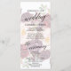 Este elegante programa de casamento floral desvanecido da caligrafia é perfeito para um casamento outono. A design apresenta uma tipografia romântica e caprichosa que sobrepõe um buquê lindo de flores rosas, marsala e burgundy. Inclui o nome da noiva e do noivo, a data e a localização do casamento, o obrigado da mensagem, a ordem do serviço, a festa noiva e um memorial opcional de "memória amorosa".