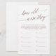 Este elegante jogo de caligrafia rosa dourada "quantos anos tinham" é perfeito para um simples chá de panela. O design cor-de-rosa-pincelado apresenta um cartão de jogo minimalista decorado com tipografia da folha de ouro rosa romântica e caprichosa. Personalize o jogo com os nomes da noiva e do noivo. Nota: Este design não apresenta folha de ouro rosa real. É um gráfico de alta qualidade feito para se parecer com folha de ouro rosa.