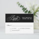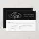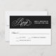 Uma carta RSVP de casamento maravilhosamente elegante com um texto RSVP de escrita caligráfica adorável em prata sobre um fundo preto contrastante. Edite a data de resposta com a data de RSVP desejada. Outra design de placa RSVP está disponível nesta coleção de casamento que inclui seleções personalizáveis de entrada.