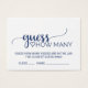 Estes marinhos de caligrafia adivinham quantos beijos os cartões de jogos são uma atividade divertida para um chá de panela elegante. Encha um frasco com os Kisses de Hersey e faça seus hóspedes adivinharem quantos doces estão no frasco. A resposta mais próxima ganha um prêmio! A design branca e azul apresenta tipografia rústica e um adorável coração romântico.