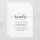 Esse convite minimalista é perfeito para um encontro rústico com o bebê. O design simples e elegante apresenta a tipografia de scripts clássicos e ricos em preto e branco.
