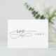 Envie esta elegante e moderna placa de refeição RSVP de Caligrafia Moderna Negra e Branca 3 com seus convites para casamentos e festas, incluindo Festas de formatura. Veja nossa coleção para uma opção sem a refeição.