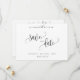Anuncie sua data de casamento com este lindo casamento, salve o cartão de data. A caligrafia escrita à mão moderna explica tudo. Estilo simples e limpo. Fundo branco com tipografia negra. Área atrás para os detalhes e nomes do seu cheio, assim como área para o site de casamento ou mensagem para seus convidados (isto é, "Mal posso esperar para vê-lo lá!"). O mesmo design na apresentação do cartão postal também está disponível.