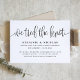 Nós amarramos o nó! Convide a família e os amigos para a celebração do seu casamento com este habitual convite de casamento. Ele apresenta uma escrita caprichosa e uma tipografia clássica. Personalize adicionando os detalhes do evento. Este anúncio de casamento preto e branco está disponível em outras cores. Perfeito para qualquer tema de casamento ou época de casamento.