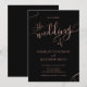 Apresentando caligrafia na moda, este convite para o casamento em rosa e preto pode ser facilmente personalizado com todas as informações sobre seu dia especial de casamento.